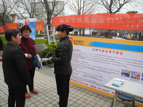 “誠實(shí)守信,安全萬家”是許昌天倫此次宣傳的主題。許昌天倫準(zhǔn)備了精美的安全常識(shí)展版、天然氣業(yè)務(wù)辦理手冊(cè)、安全宣傳手冊(cè)等宣傳物品,并設(shè)置了咨詢臺(tái),安排客服部業(yè)務(wù)經(jīng)驗(yàn)豐富2名員工為用戶提供咨詢服務(wù),并向過往的行人發(fā)放天然氣安全宣傳資料。此次活動(dòng)的開展,進(jìn)一步增強(qiáng)了居民的安全意識(shí)和防范能力,樹立了公司良好的外部形象,受到廣大用戶的一致好評(píng)。