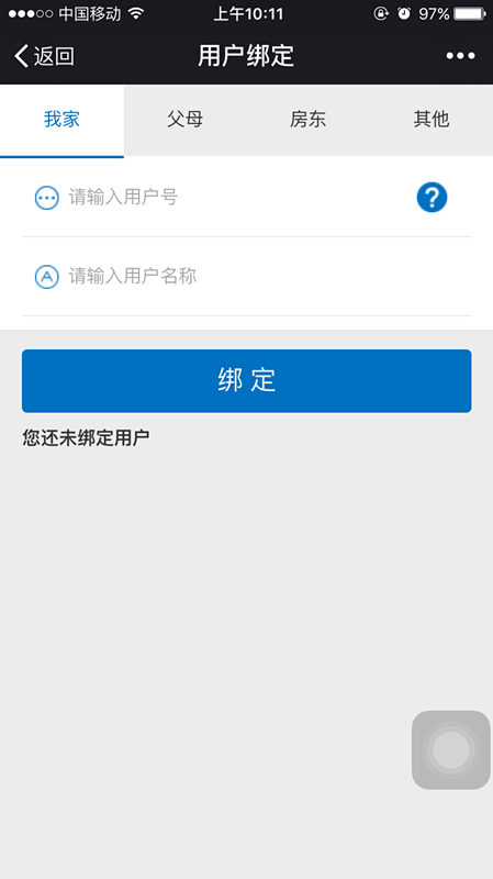 在選項卡中,點擊用戶綁定,您可以綁定您的天然氣戶號(IC卡戶暫時不能綁定),輸入您的天然氣戶號(例AA1000012345),若是4開頭的新用戶用戶號前可不用加AA,直接輸入10位的戶號即可綁定。綁定成功后可在繳費歷史中查詢近一個月、三個月、六個月的繳費情況(X年X月X日,繳費XX元).
