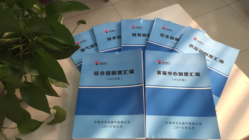 為了規(guī)范日常管理行為,加強(qiáng)制度執(zhí)行力度,做到有章可循有制可依。2016年5月下旬,許昌公司發(fā)起了制度大疏理活動,各部門對內(nèi)部日常執(zhí)行制度、操作流程、規(guī)范、細(xì)則等進(jìn)行了整理、細(xì)化、修訂,并按照統(tǒng)一的排版、排序等要求進(jìn)行了匯總歸集,通過數(shù)月對各部門制度內(nèi)容的規(guī)范、整理、核準(zhǔn);多次反復(fù)修訂精簡,形成了以部門為單位的制度匯編手冊,并設(shè)計了精美的封面,于2016年9月19日正式下發(fā)至各部門。