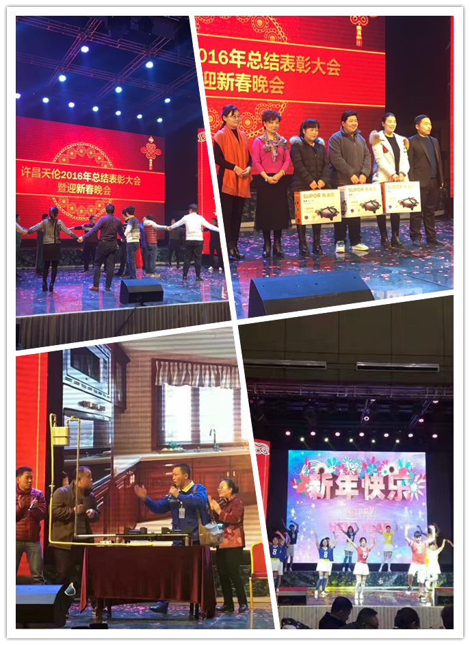 “聞雞起舞舞新春,天倫載歌歌豐年”, 1月18日下午,許昌天倫組織召開“2016年總結(jié)表彰大會暨迎新春晚會”。許昌天倫總經(jīng)辦、各部門非值班人員及豫南大區(qū)、鶴翔工程公司許昌分公司、珠峰運輸公司等業(yè)務(wù)單位領(lǐng)導(dǎo)、員工齊聚一堂。年會現(xiàn)場充滿了激情、熱烈、活躍的氣氛。